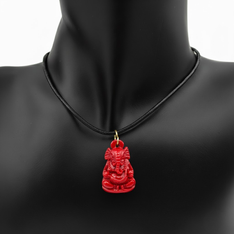 Ganesha necklace on a sleek black cord, blending spiritual symbolism with minimalist style. The adjustable length makes it easy to layer or wear solo as a meaningful statement piece.
